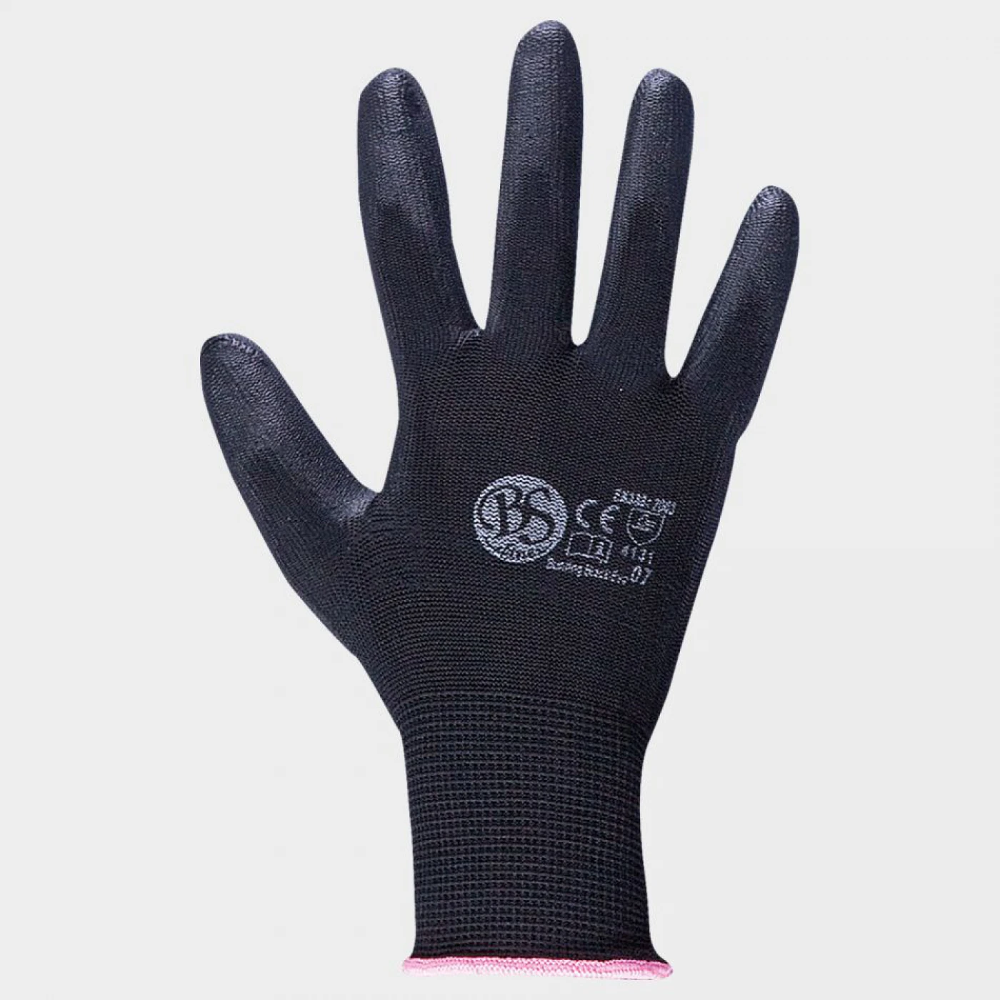 Mănuși cu cinci degete din tricot din poliester, tricotat, fără cusături, îmbinat cu un strat subțire de poliuretan pe palmă și degete, cu manșetă elastică.