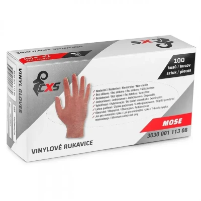 Mănuși din vinil de unică folosință, greutate 4,0 g, fără silicon și latex, ușor pudrate.