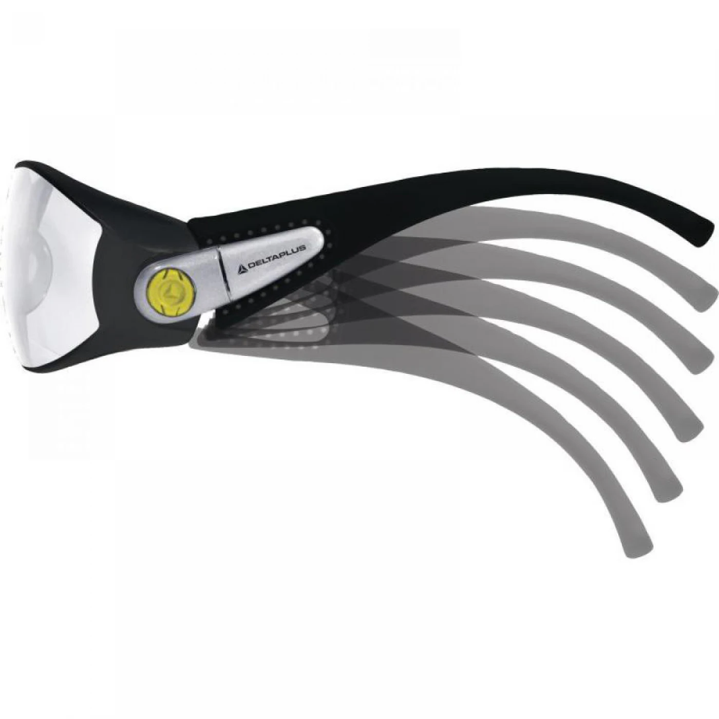 2 in 1 polycarbonate glasses - Interchangeable arms/Elastic. Twin material curved arms. Removable foam. Wide field of vision.